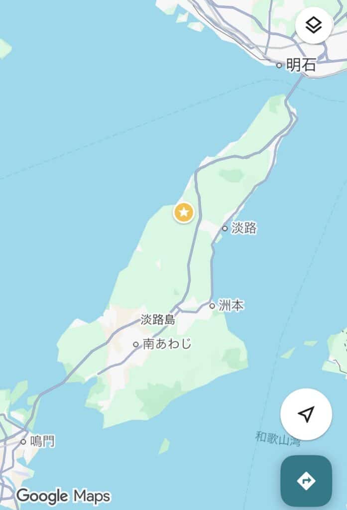 淡路島、縦に長いのですが、何と50kmくらいあるんですね。
