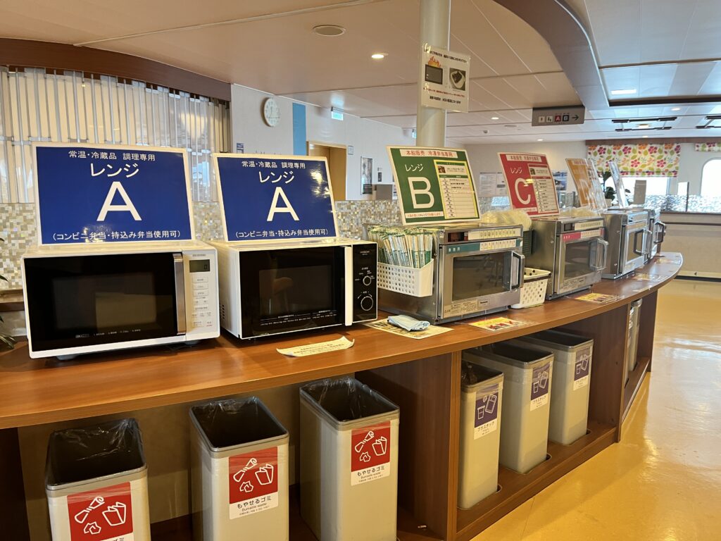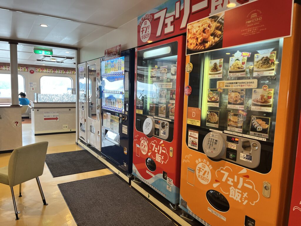このフェリーは、レストランは無く、食事は自販機の冷凍食品&電子レンジです。