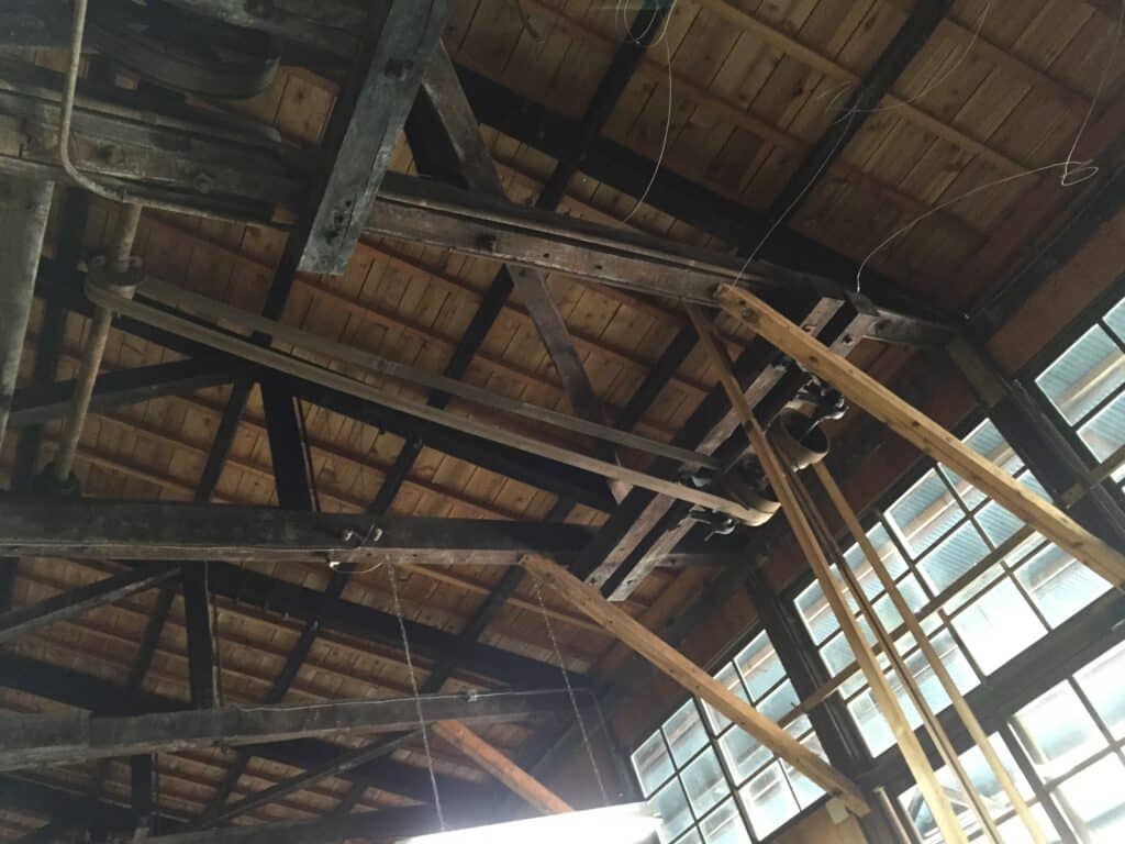 そんな風に軸とプーリーを使って、それぞれの機械のために動力を分配しています。