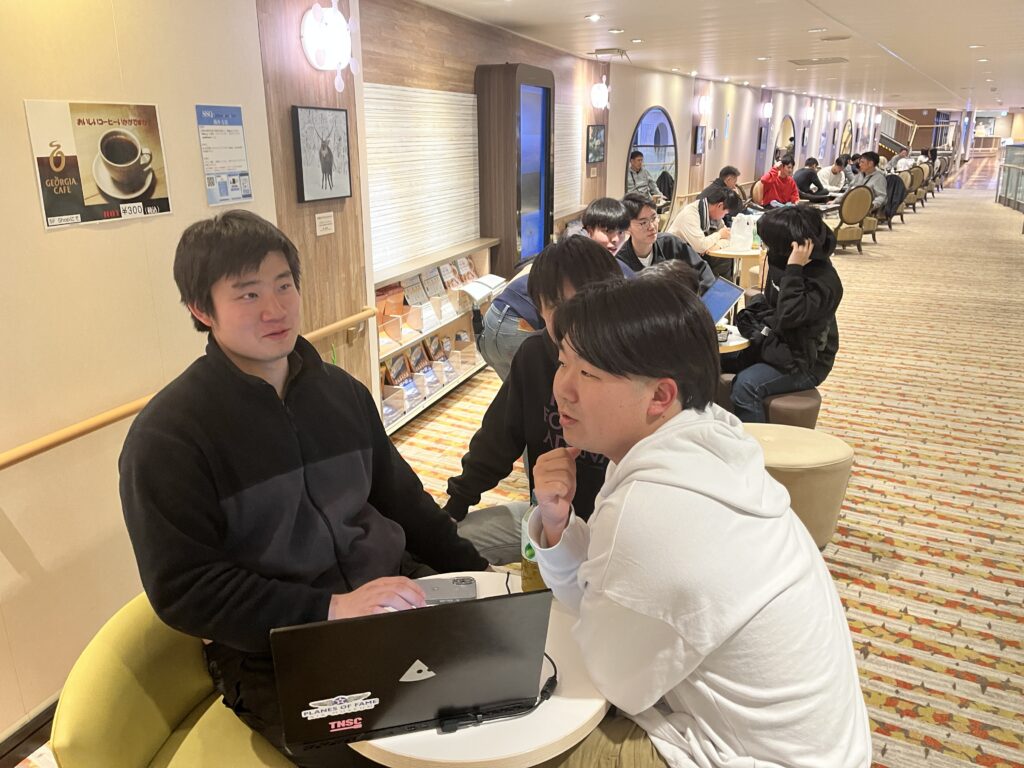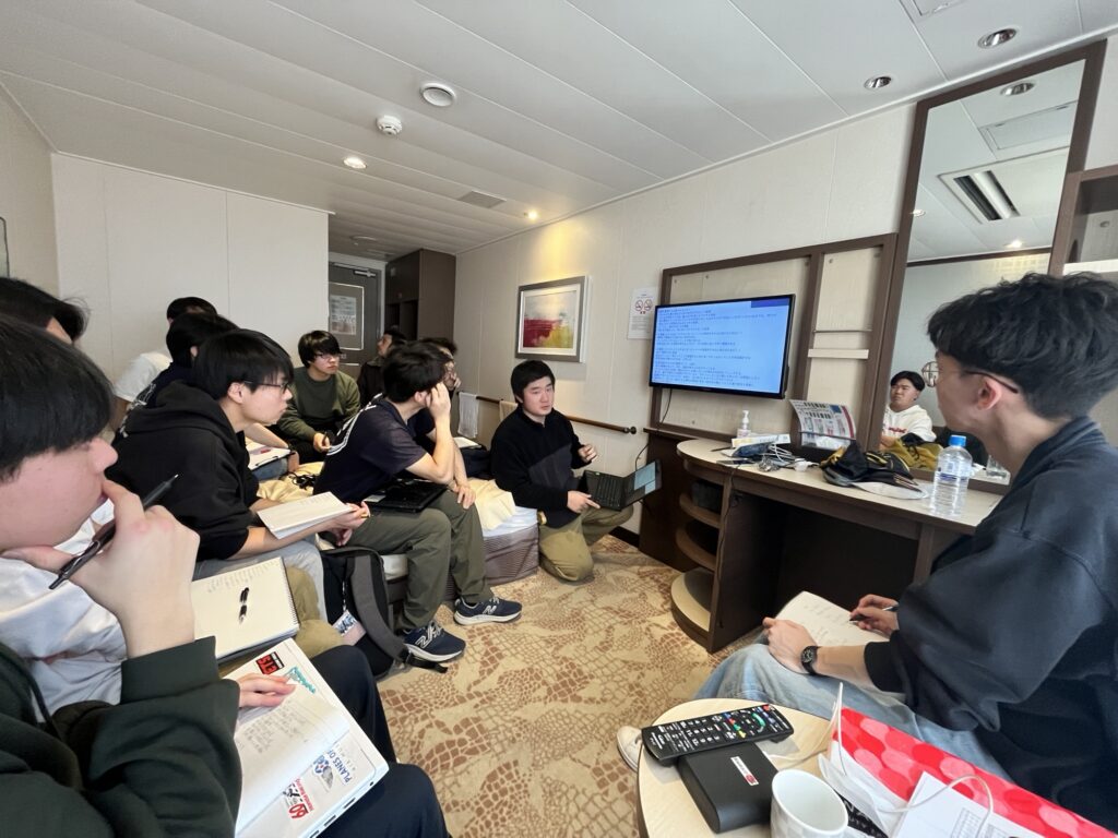 もちろん帰りの船内でもミーティング。